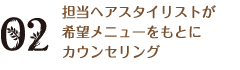 次回ご来店までのキレイ持続のためにホームケアについて担当スタイリストがアドバイスいたします。次回のご来店のメニュー提案のアドバイスもさせていただきます。